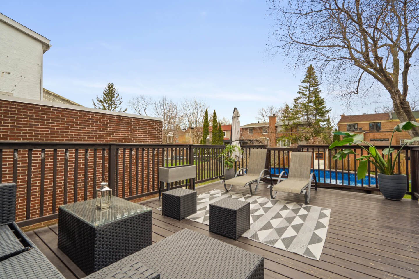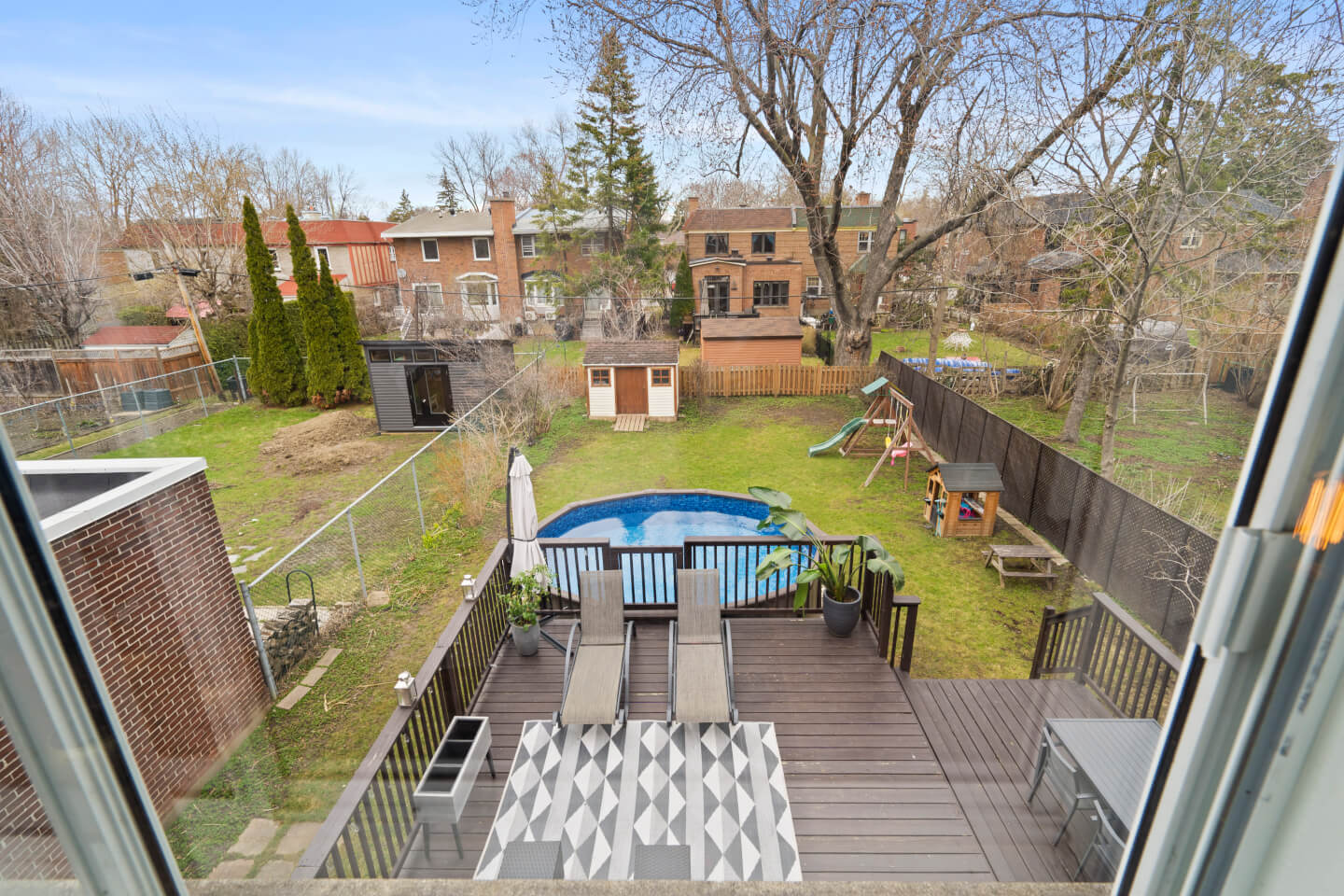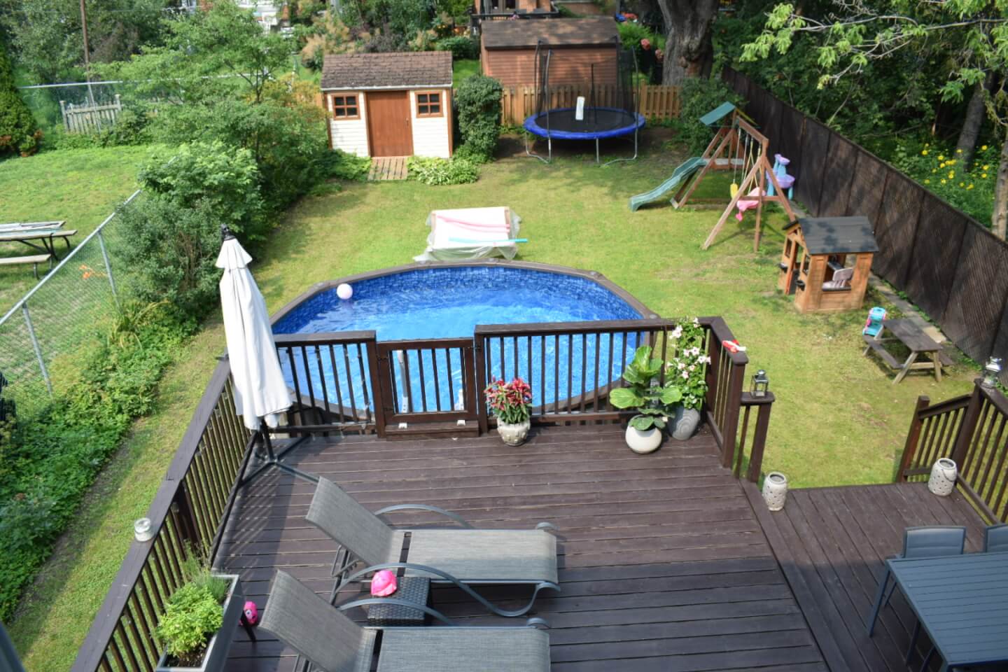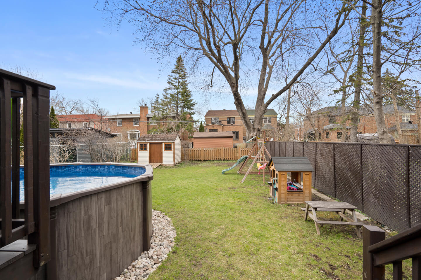 Immense jardin clôturé avec piscine hors terre - Avis de non-conformité: - la Ville de Montréal nous a récemment avisé que la clôture entourant la piscine aurait besoin de 10cm de plus pour être conforme aux normes. Nous allons régler le problème avant la prise de possession.