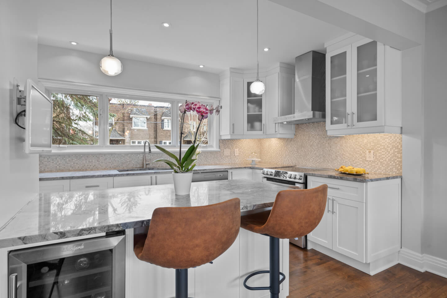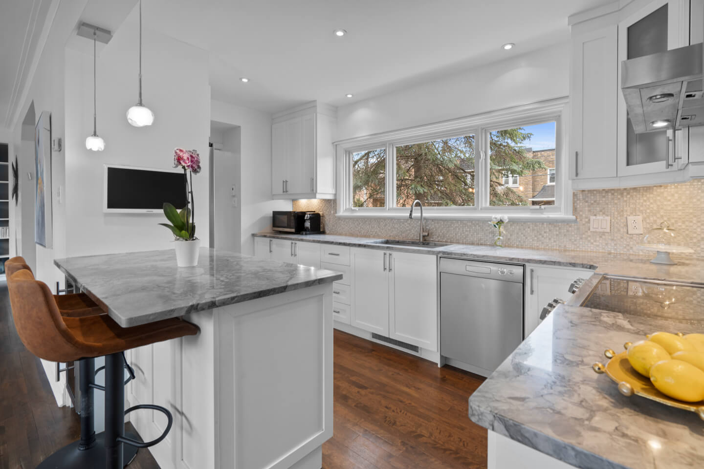 Superbe Cuisine, îlot déjeuner, comptoir de granite