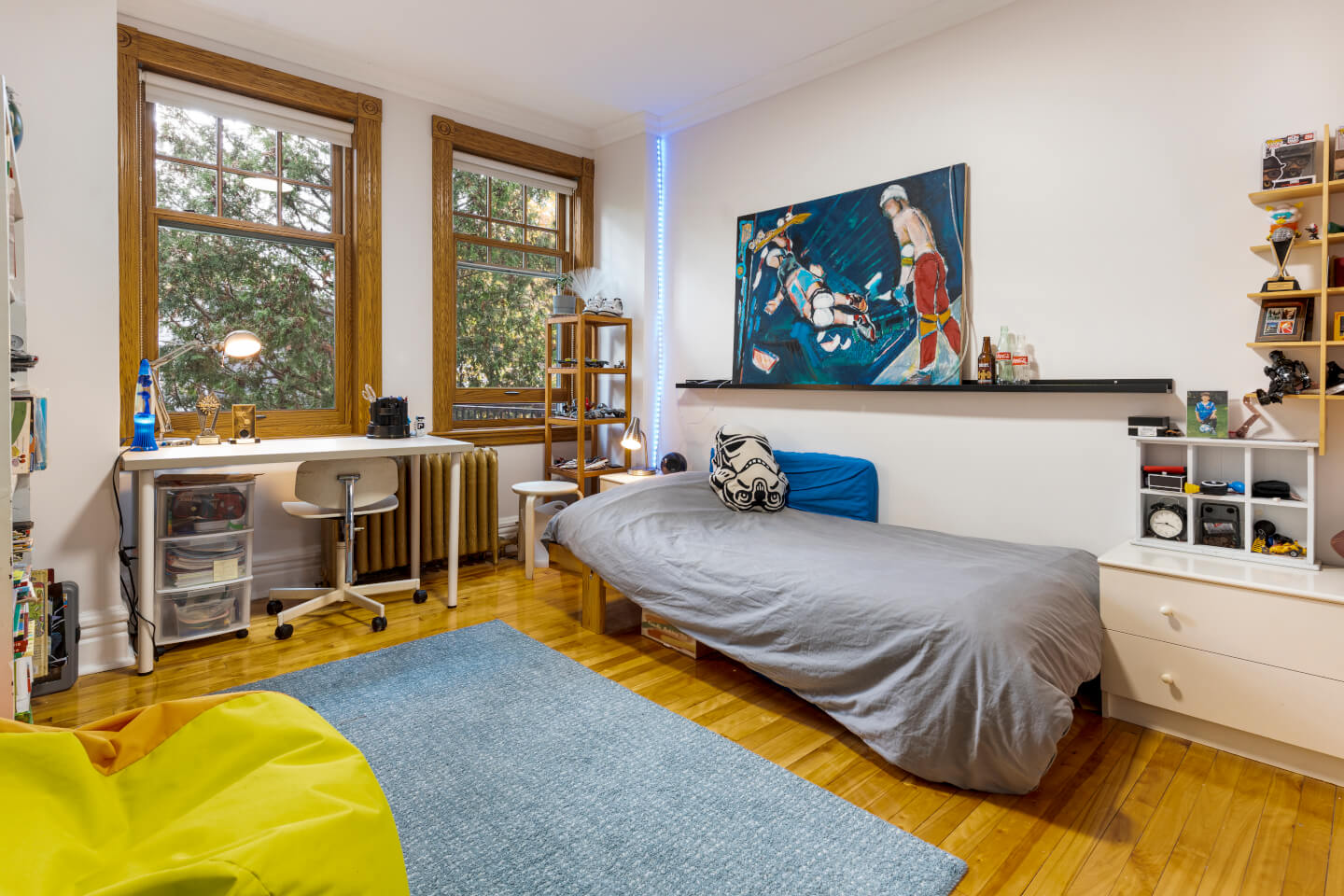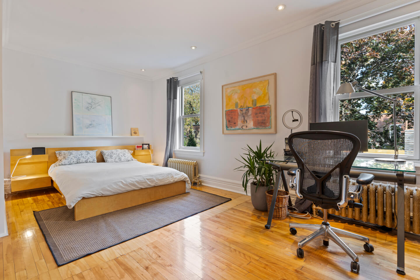 3 Chambres à coucher (* Immense Chambre des maîtres ouverte sur anciennement la 4ième chambre qui offre un espace bureau et beaucoup de rangement)