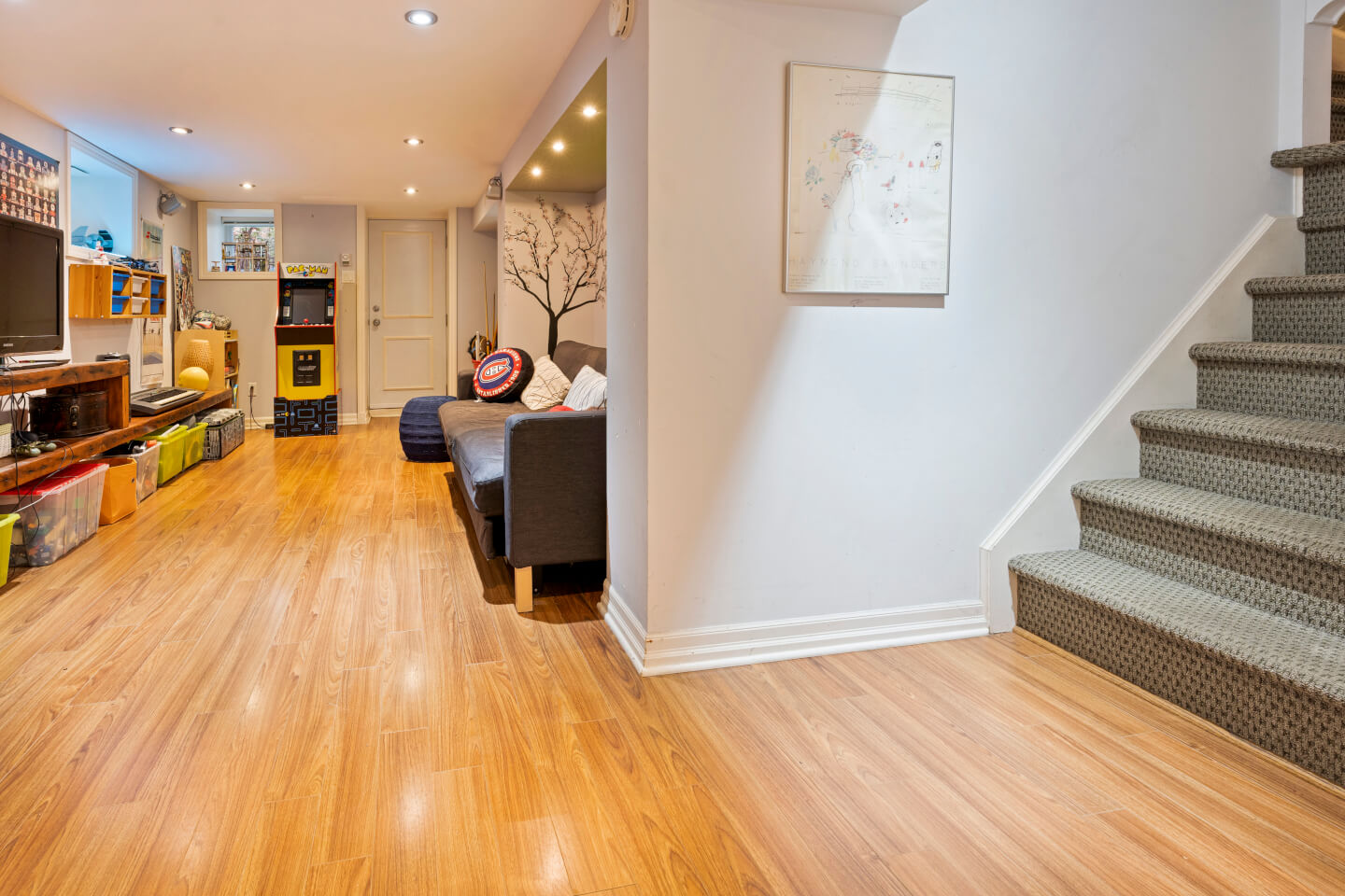 Sous-sol superbement fini, salle familiale et foyer au gaz, salle de bains; plancher radiant, et 4ième chambre ou bureau. Garage via la ruelle. Voisinage agréable. Près des transports et les écoles