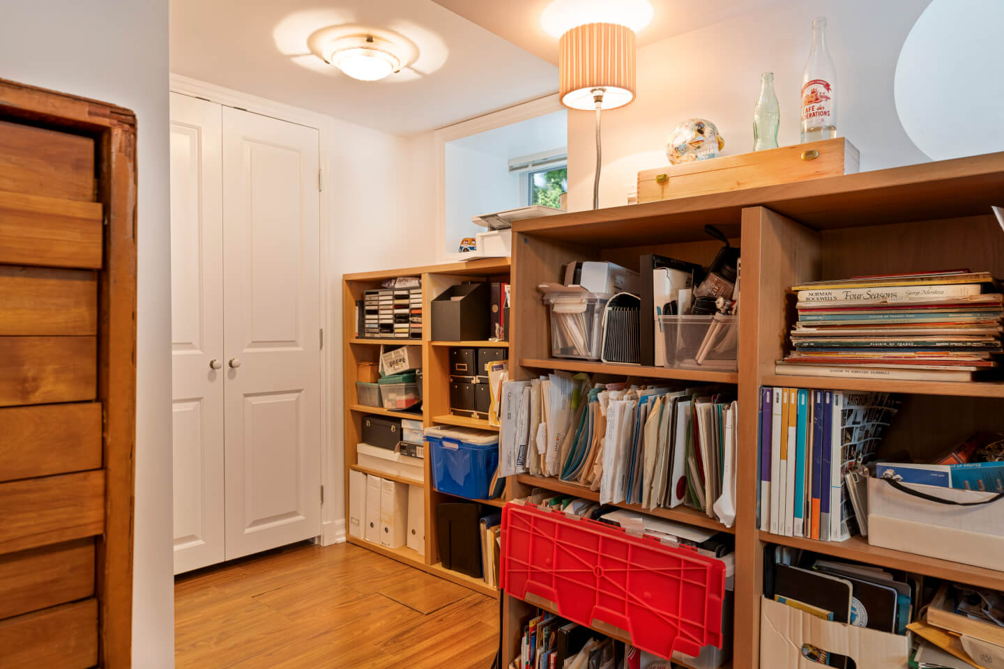 - Étagères de bois ancestral dans la salle à manger et sous-sol