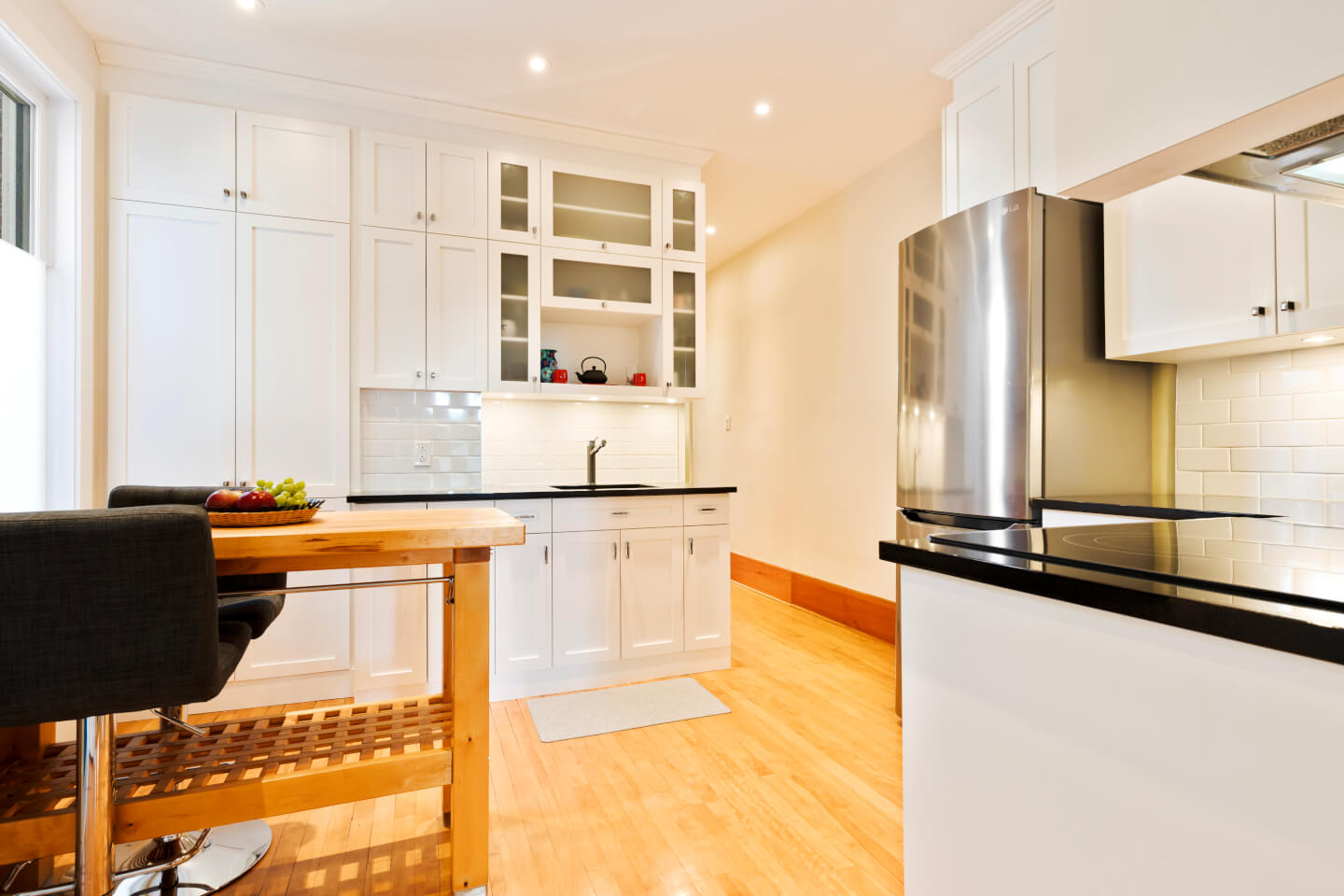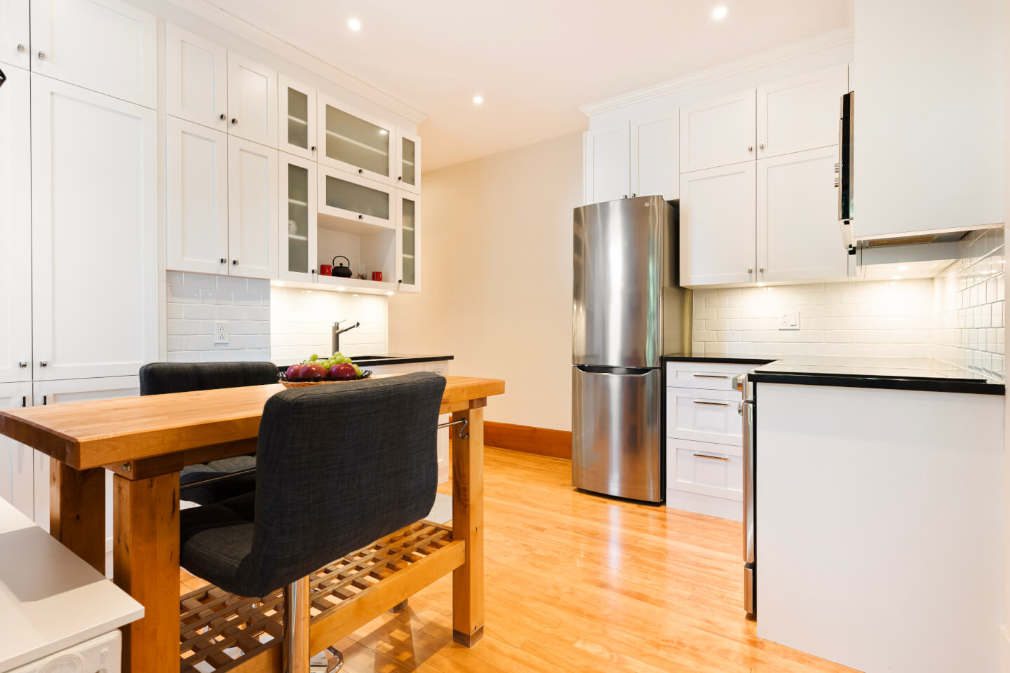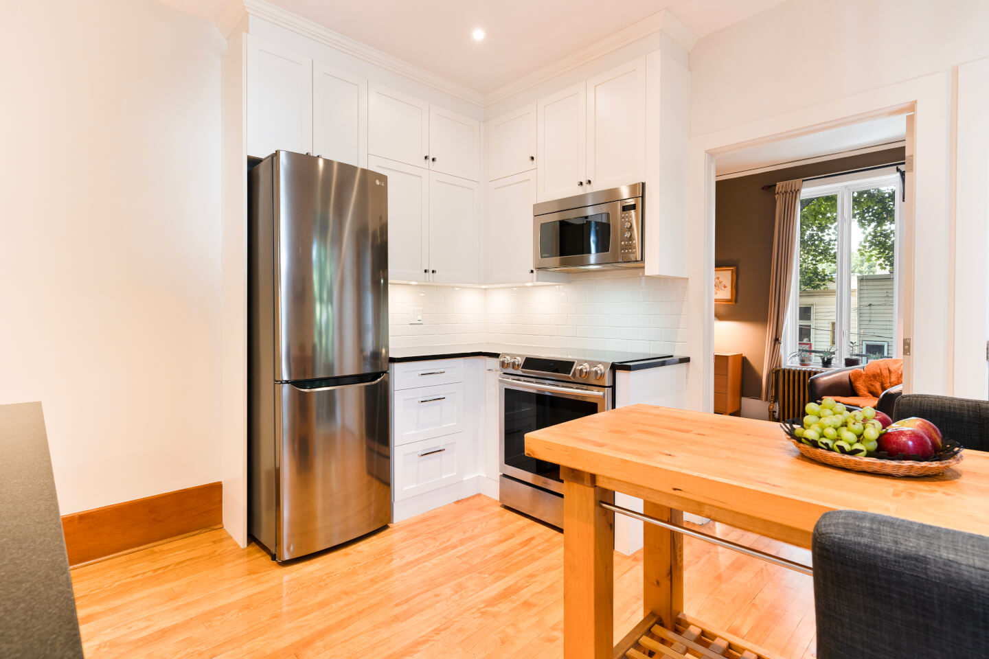 Superbe petite Cuisine récente, comptoir de quartz et plancher de bois