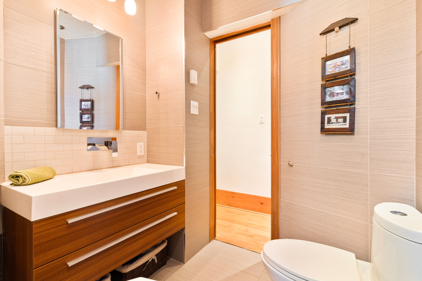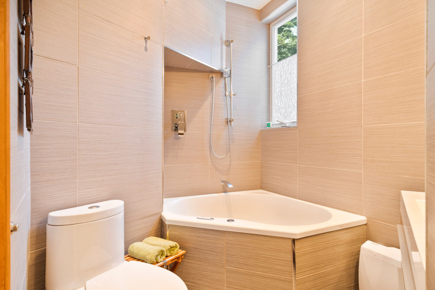 Deux chambres dont une spacieuse chambre principale double avec son espace détente /vivoir, en plus d’une pièce bonus à l’avant, mini bureau adj Lavoir et son balcon ensoleillé. Jolie salle de bain récente.