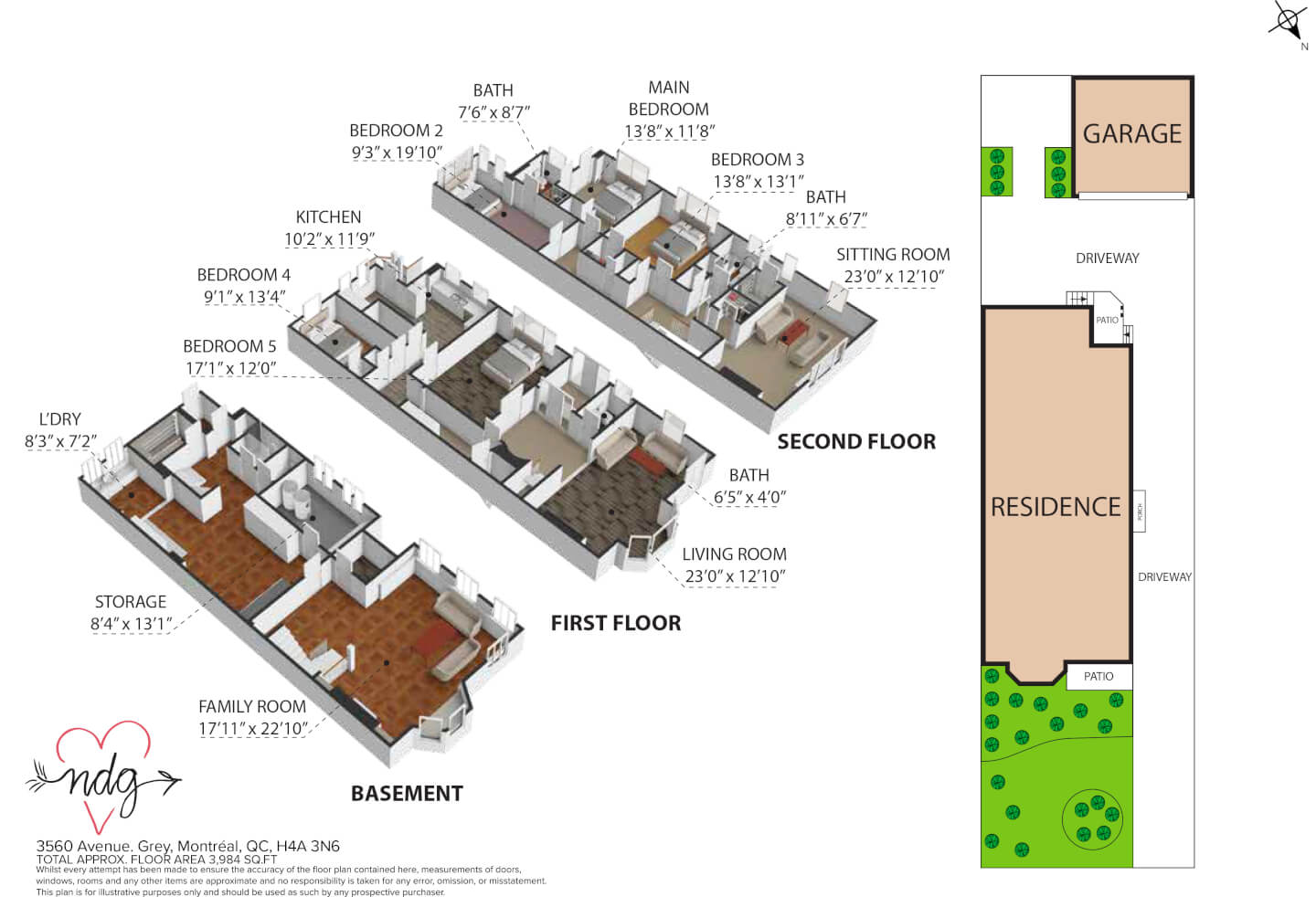 275.7 m2 (2976 pi2) de superficie habitable BRUT + 137.85 m2 (1483 pi2) au sous-sol