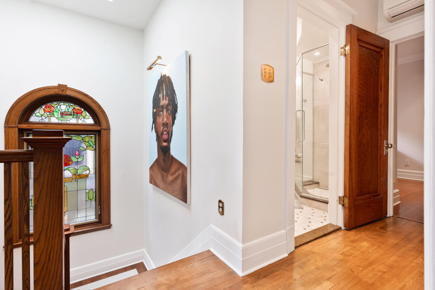 Palier; puits de lumière, magnifique vitrail & AC mural