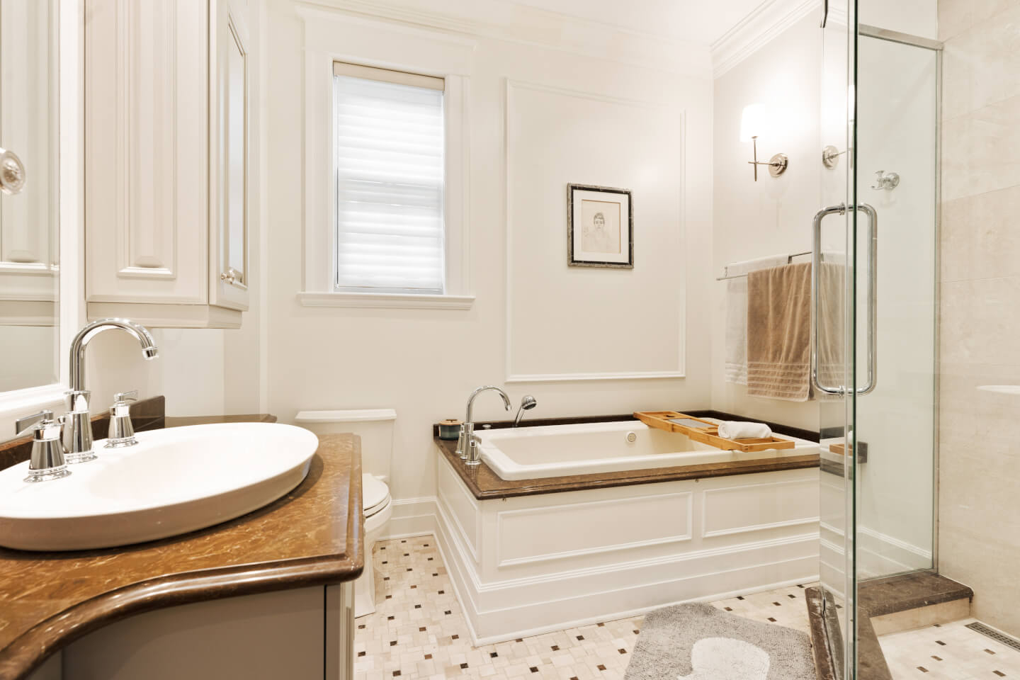 Bain thérapeutique. Accessoires Kholer, plancher chauffant, rideau électrique