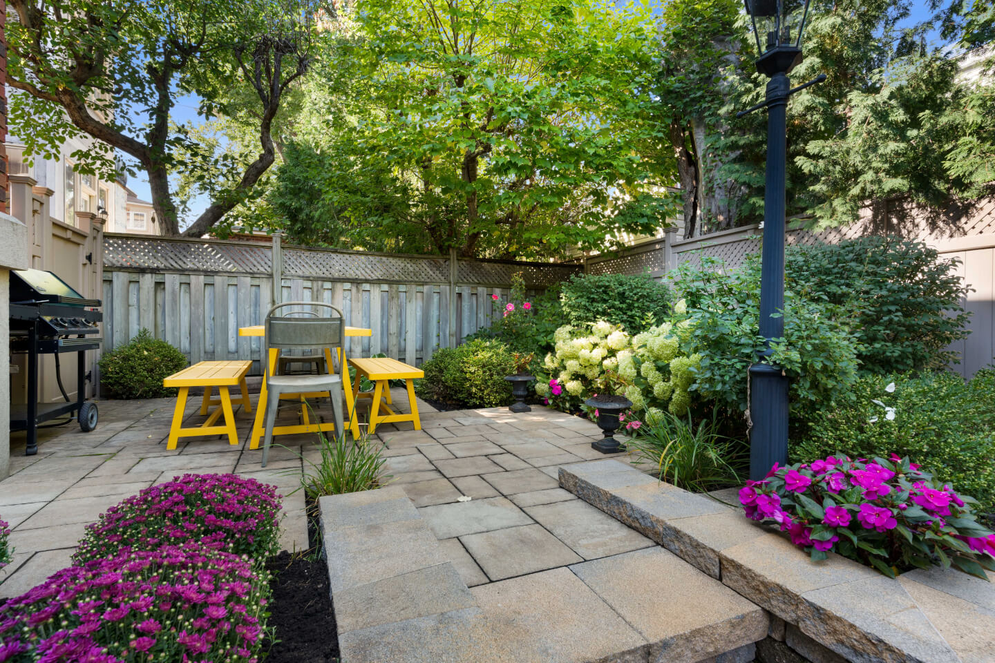 Superbe jardin urbain. Stationnement pour 2 voitures en tandem.